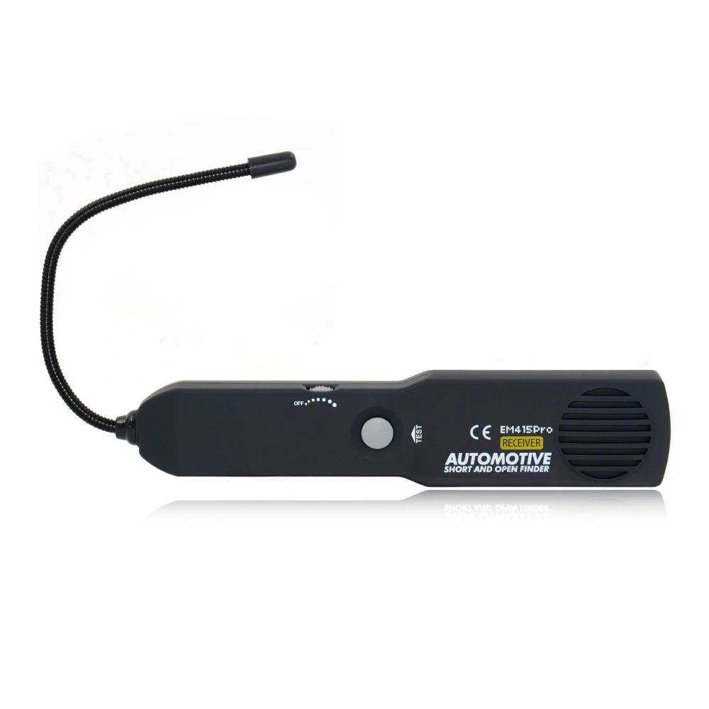EM415PRO detects and alerts you immediately where a circuit is open.You can quickly and easily Locate short circuits,open connections,broken wires,current leaks and even trace wires.You can also find intermittent circuit problems by flexing wires or connectors and listening for a change in the receiver tone Allowing you general tracing or pinpointing the problem location.It also shows you the direction to the short with its direction indicator,eliminating the guesswork. This professional tool will work on all kinds of circuits with voltages between 6 and 42 volt DC.such as those found in automobiles,trucks,tractors,boats,RVs,etc…With its wide working voltage range
